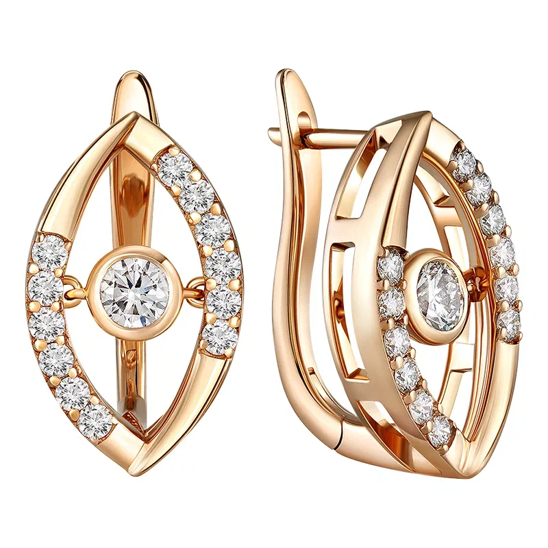 Серьги в форме глаз изготовлены из желтого золота 585 пробы. Вес изделия составляет 9.21 гр.