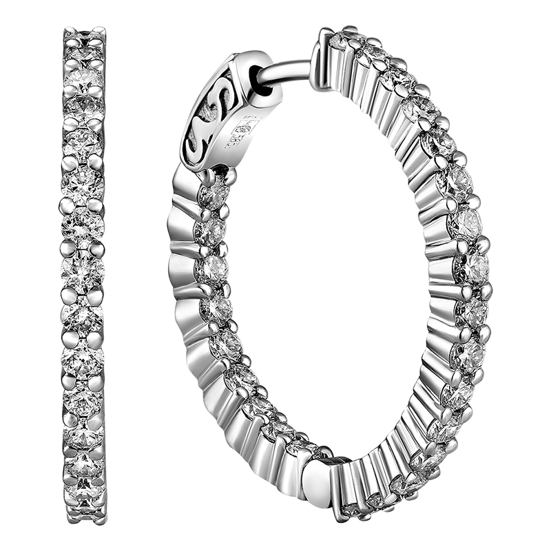 Серьги-кольца изготовлены из белого золота 585 пробы. Вес изделия составляет 6.36 гр.