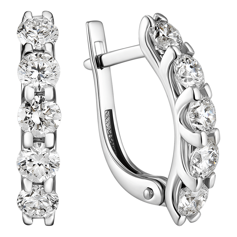 Серьги украшают 10 выращенных бриллиантов круглой огранки 1.673 ct с характеристиками цвета EFG и чистоты VS-SI.